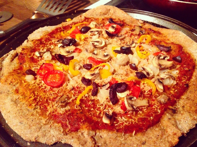 Unfortunately I have no photos of the pizza because, in a hunger-crazed frenzy, I forgot. The guests had some mozzarella and mixed vegetables and I used thinly sliced courgette to cover the top of mine.